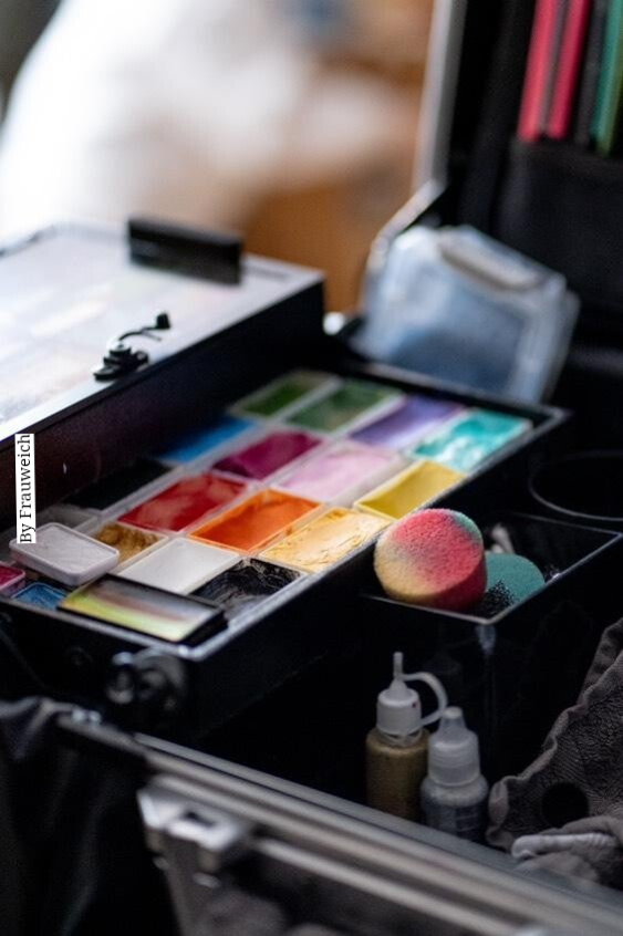 Ich arbeite hochprofessionell, hygienisch und mit hochwertigen Produkten. Mein Setup bestehend aus Visagistenstuhl, einheitlichem Aufsteller und meinem Schminkkoffer mit Standbeinen vermittelt genau das. Mein Schminkstil ist modern und fantasievoll. Meine Kunden schätzen meine Zuverlässigkeit und das positive Feedback der Kinder. Auf Events bin ich mit meinem Angebot ein echter Publikumsmagnet und mit meinem guten Namen bereits vielen Eltern der Region bekannt.